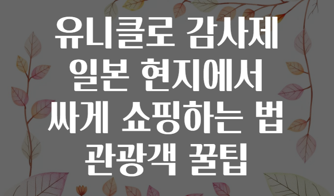 "유니클로 감사제 기간에 일본에서 꼭 쇼핑하려는데, 어떻게 하면 더 싸고 알뜰하게 살 수 있을까?"라고 고민한 적 있나요?🛍️🇯🇵 한국과는 또 다른 일본 현지만의 할인 꿀팁과 쇼핑 노하우를 알면, 여행 경비도 아끼고 쇼핑 만족도도 높일 수 있답니다. 이번 글에서는 일본 유니클로 감사제를 200% 활용하는 쇼핑 비법부터 일본 여행에서 꼭 알아야 할 교통, 맛집까지 꼼꼼히 알려드릴게요! 😉