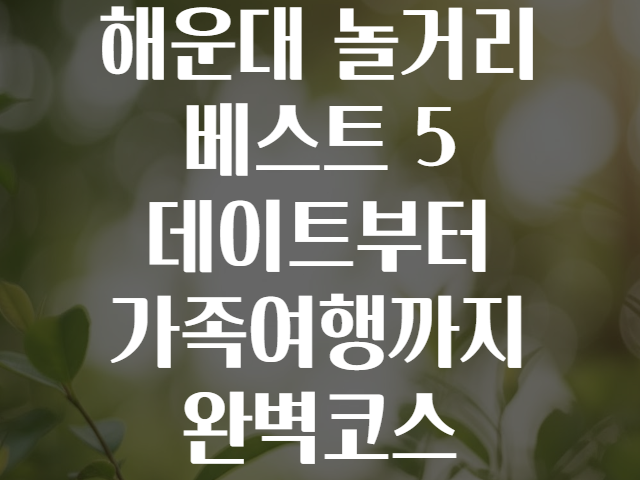 해운대, 놀거리 베스트 5! 데이트부터 가족여행까지 완벽 코스 🎉🌊