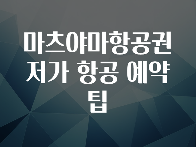 마츠야마항공권 저가 항공 예약 팁